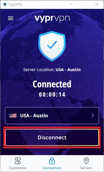 - Ouvrez VyprVPN et sélectionnez Déconnecter